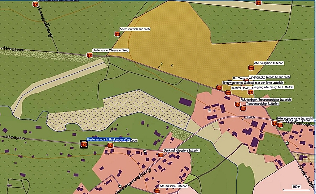 Das nächste Foto zeigt den Waldweg zum Jägerunterstand im Boden gegenüber dem sogenannten Räuberweg in Richtung Lutterbach und Umpunktstaion für das Abwasser in Lutterloh.