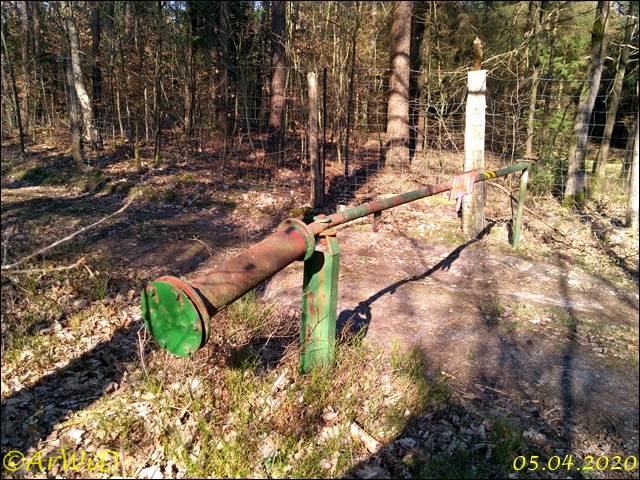 Es handelt sich um eine eiserne Schranke an einen Seitenweges zu einem für die Öffentlichkeit gesperrtes Privatgelände auf der Position 32U 581089 5855991.