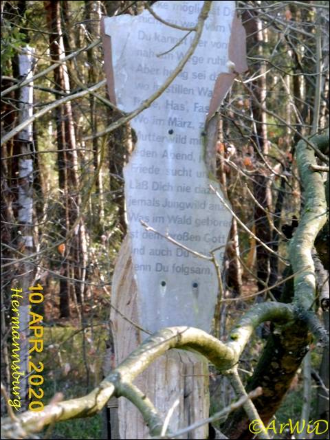 Es handelt sich hierbei um das inzwischen zugewachsene defekte Lehrpfadschild auf der Position 32U 574900 5853260 am Rande der Alte Celler Heerstraße.