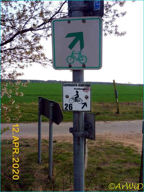 Es handelt sich hierbei um die Wegweisung an der Kreuzung auf der Position 32 U 581424 5861930 kurz hinter Schmarbeck in Richtung Wacholderheide bzw. den Wirt- schaftsweg in Richtung Oberohe.
