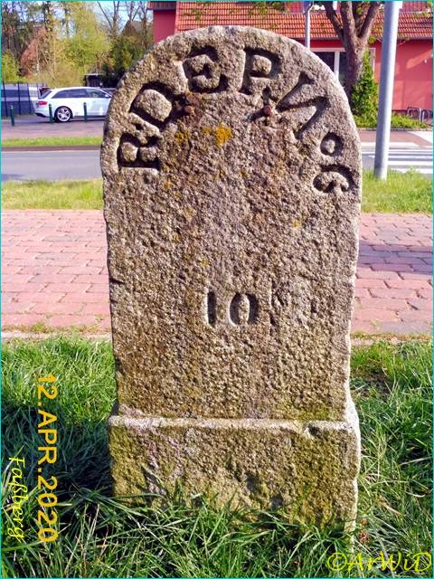 Es handelt sich hierbei als erstes um den Meilenstein mit den entsprechenden Angaben auf allen vier Seiten auf der Position 32 U 578889 5861935 an der Große Heerstraße.