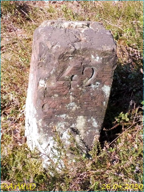 Es handelt sich hierbei um den Jagenstein und der gravierten Ziffern 42 und 47 mit dazugehörigen umgefallenen Wegweiser auf der Position 32 U 577130 5840556 an einer Straßenkreuzung am Radwanderweg von Hornshof bei Celle in Richtung dem Forstort Kohlenbach bei Eversen.
