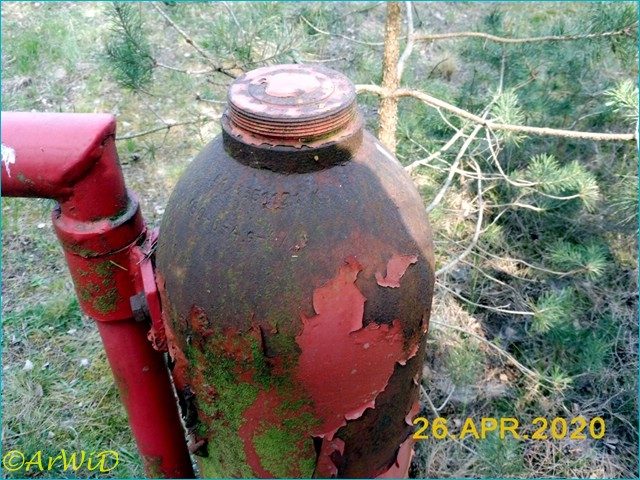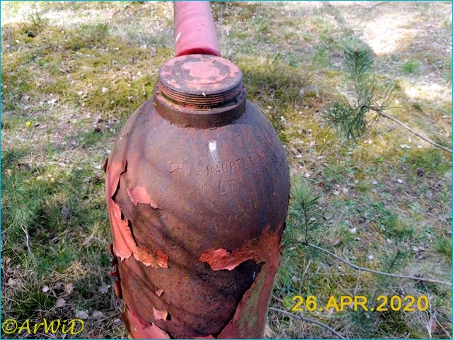 Es handelt sich hierbei um ein teilweise zu bzw. überwachsenes Verkehrsschild an einen Baum auf der Position 32 U 571330 5846540 an einen alten Wanderweg in Richtung Diester Brücke .