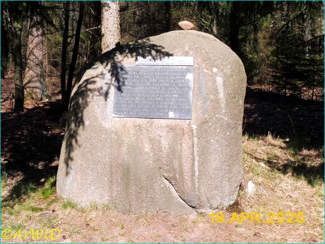 Auf einer Lichtung steht der Sorgenstein mit Gedenktafel auf der Position 32 U 5854667 5854667 der als Erinnerung an den Orkan Quimburga** vom 13. November 1972 der einen Schaden von 1,34Mrd DM bzw. ca. 2,2 Mrd Euro angerichtet hat und bei den in Norddeutschland bei Orkan selbst aber auch bei den Auträumarbeiten 73 Menschen um Leben kamen.