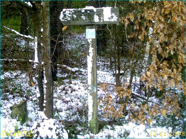 Das zweite Foto zeigt das Objekt im November 2008 am Ende des Weesener Weges. Der Wegweiser steht damit am Verbindungsweg von Lutterloh nach Weesen und der Abzweig geht von dort aus in Richtung Gerdehaus über den Hauuselberg.