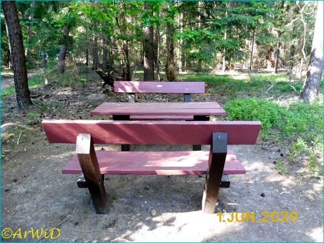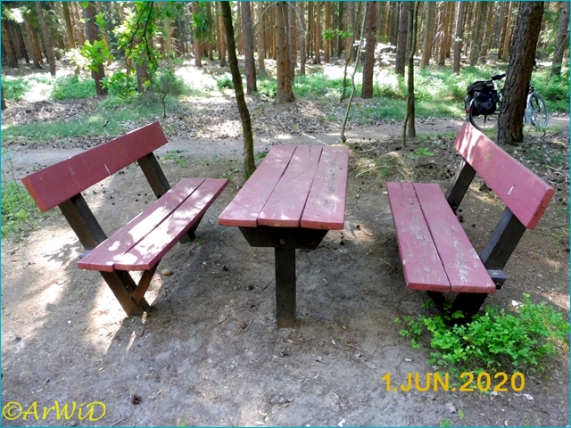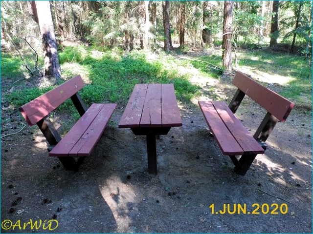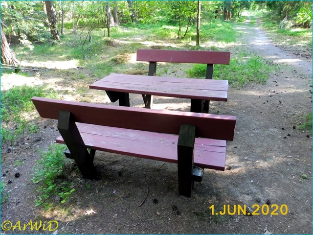 Der erste Rastplatz steht auf der Position 32 U 573340 5850677 und besteht aus einer Bank und den dazugehörigen Tisch kurz vor dem dortigen Grillplatz.