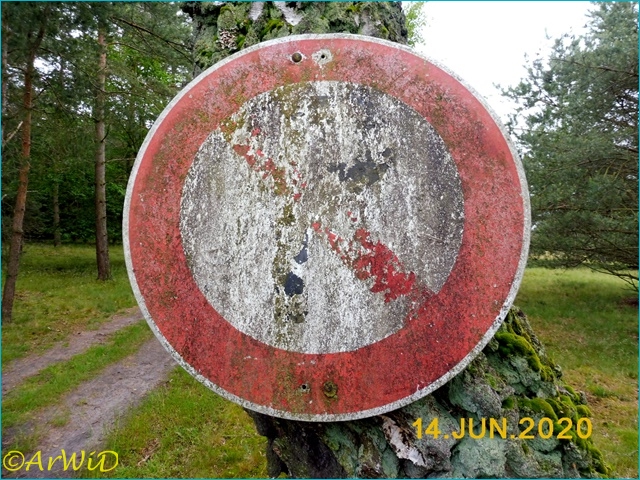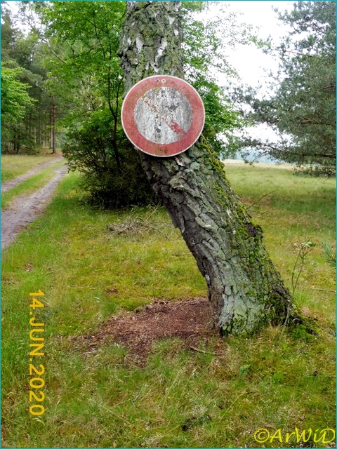 Es handelt sich hierbei um ein besonderes scheinbar sebst gemachten Schild an einer Birke auf der Position 32 U 582315 5859418 an einen Wirtschaftsweg an Rande der dortigen Heidefläche.