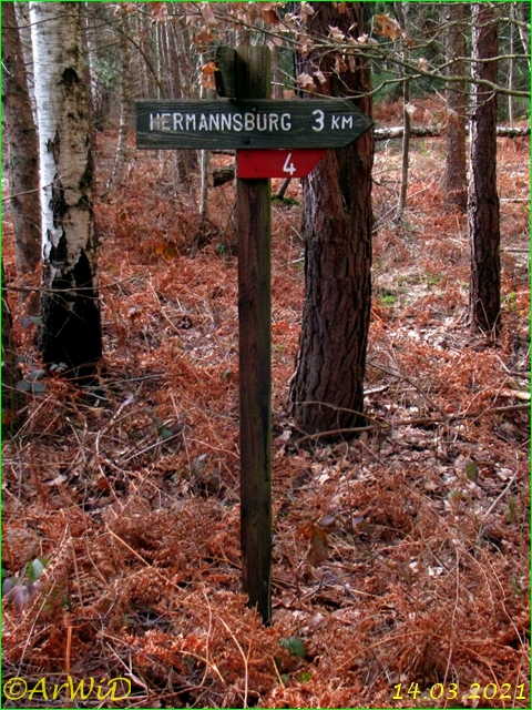 Es handelt sich hierbei um die Bank und Wegweiser mit hölzernen Schilder auf der Position 32U 575990 5854393 im Verlauf des ehemaligen Rundwanderweges 4 der ehemaligen Gemeinde Hermannsburg.