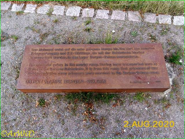 Im ersten Teil möchte ich euch das Mahnmal Objekt Rampe Objekt Bergen-Belsen auf der Position 32 U 563550 5850197 an der Landesstraße 298 am dortigen Zugang neben der Zufahrt zum Güterbahnhof der Bundeswehr vorstellen.