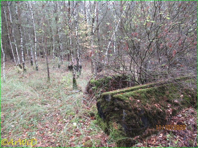 Es handelt sich hierbei um die Überreste des Beobachtungsbunker auf der Position 32 U 577513 5850774 am Rande der Heidefläche in einen kleinen Wäldchen am Tiefental bzw. am Eiksberg.