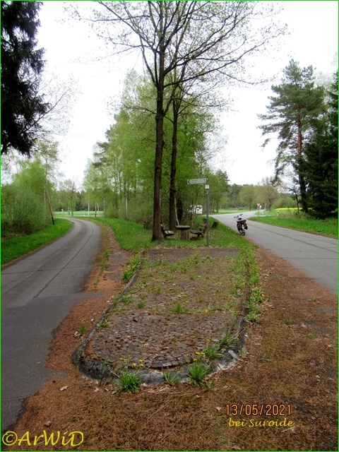 Es handelt sich hierbei um die Verkehrsinsel mit Rastplatz auf der Position 32 U 565629 5868889 an der Ortszufahrt von Suroide zur Kreisstraße 36 im Heidekreis.