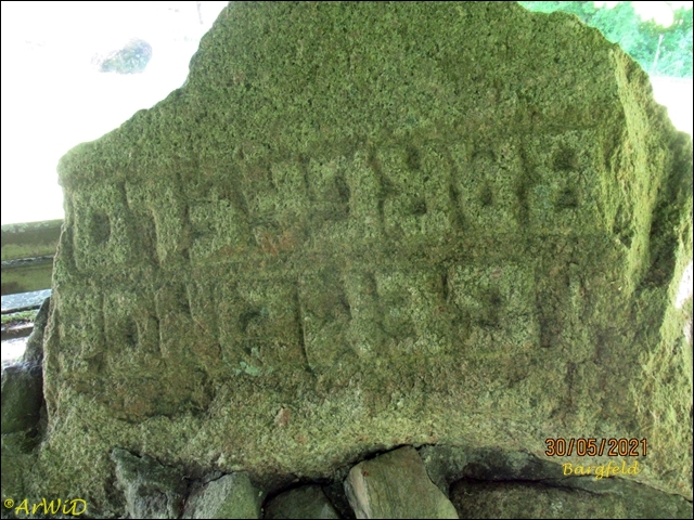 Dadurch das das Objekt auf dem Kopf liegt ist die eingebrachte Gravur schwer zu lesen. Aber ich werde mal versuchen anhand der gemachten Fotos den Text soweit wie möglich zu entziffern.