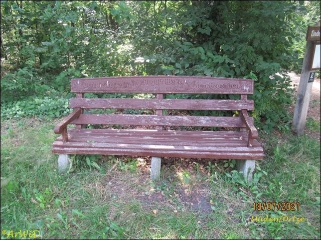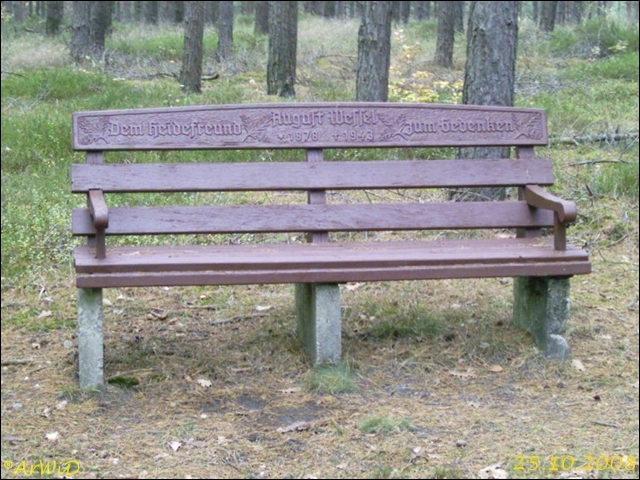 Es handelt sich um die Gedenkbank für den Heidefreund August Wessel die bis ca. 2018 auf der Position 32 U573441 5859680 an einen Waldweg in Richtung Löns-Stein stand.
