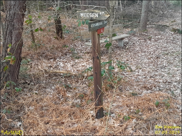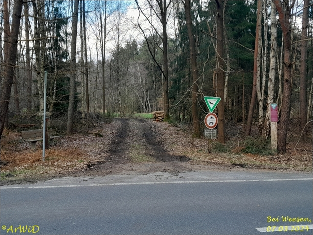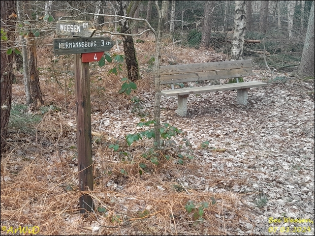 Es handelt sich hierbei um die im Jahre 2023 erneuerte Bank mit hölzerneren Wegweiser und sein Umfeld auf der Position 32 U 575973 5854379 am Abzweig der dortigen Kreisstraße 18.