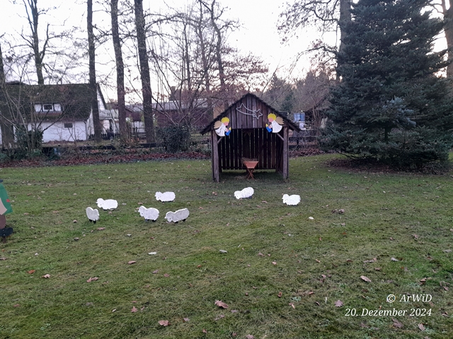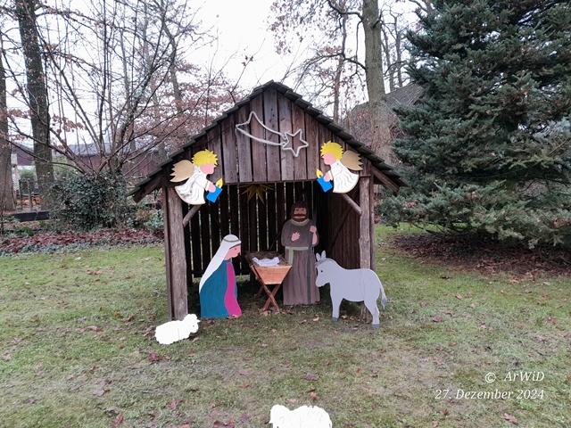 Als ich am 27.Dezember vom Einkaufen aus Hermannsburg mit dem Lastenfahrrad vorbei gekommen bin, war die Krippe dann komplett.