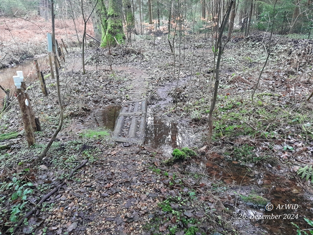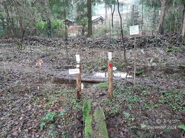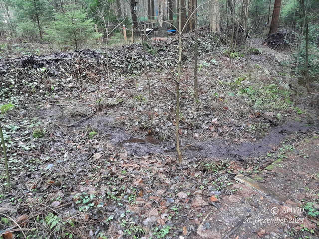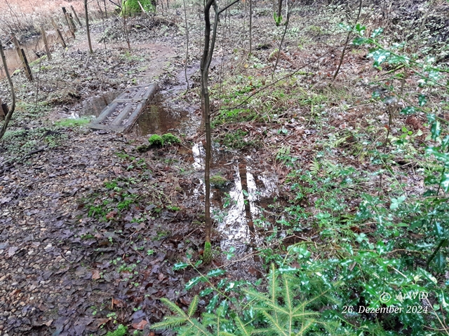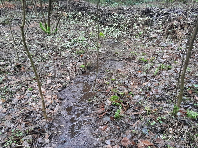 Es handelt hierbei um den von mir sogenannte Wadi Tennhäus mit einen Übergang, der ein Oberflächenablauf von der ca. 5 Meter entfernten Wasserlache ist und auf den Tennhäuser Ufer liegt. Dieser Ablauf liegt im Sommer meistens trocken, aber ist in diesen Jahr seit Ende Oktober witterungsbedingt immer mit Wasser gefüllt.