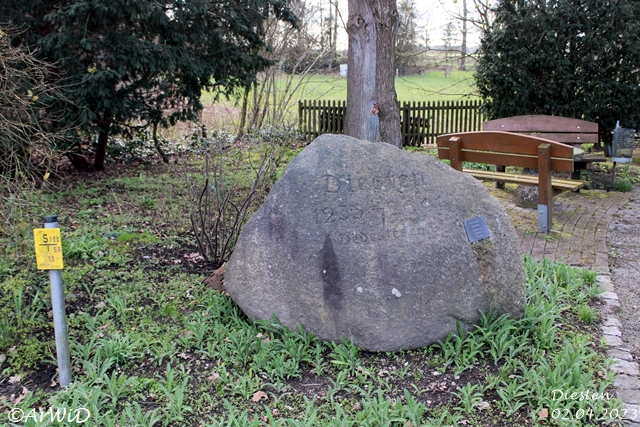 Zusätzlich steht hier am Rande dieses Platzes noch der Ortsstein mit der Jahreszahl 1233 Ersterwähnug und der kleinen Platte mit dem Werdegang der Ortsnamen.