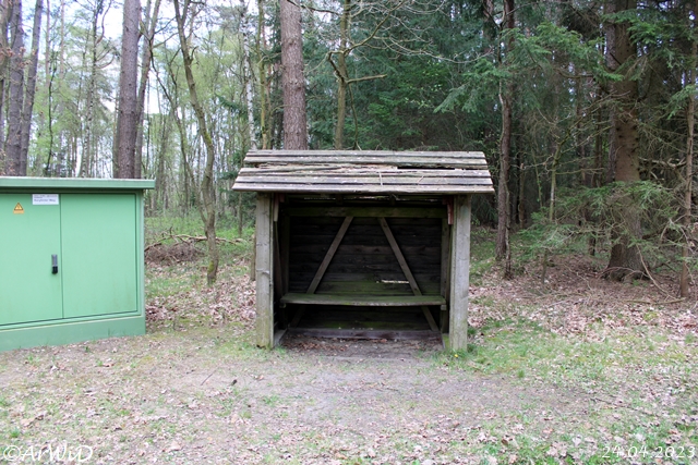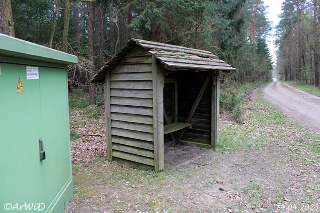 Es handelt sich hierbei um die Schutzhütte mit Wegweiser am Baum auf der Position 32 U 590805 5841748 im Verlauf des Bargfelder Weg zwischen Bargfeld und Marwede und in Höhe des Abzweiges in Richtung Endeholz bei Eschede.