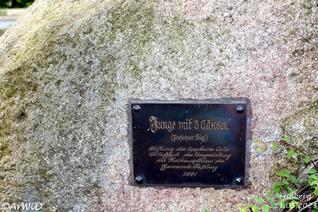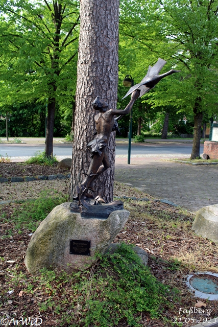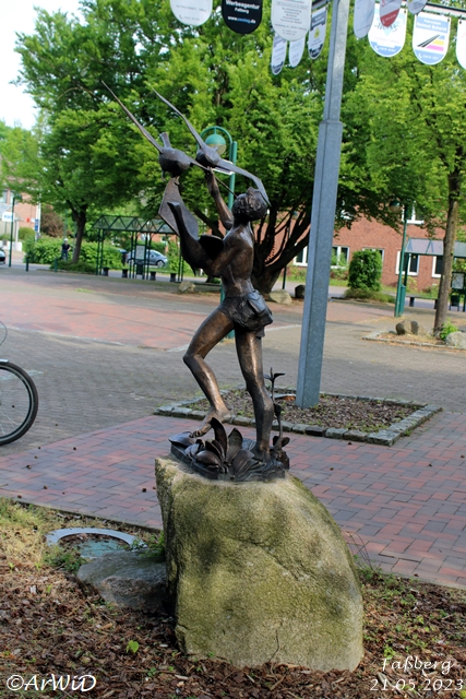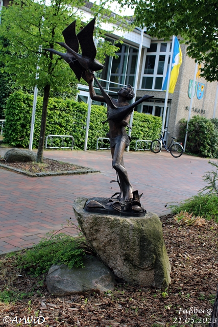 Es handelt sich hierbei um die Skulptur “ Junge mit 3 Gänsen“ auf der Position 32 U 578819 5861830 auf dem dortigen Rathausplatz.