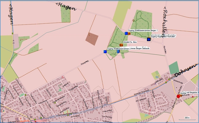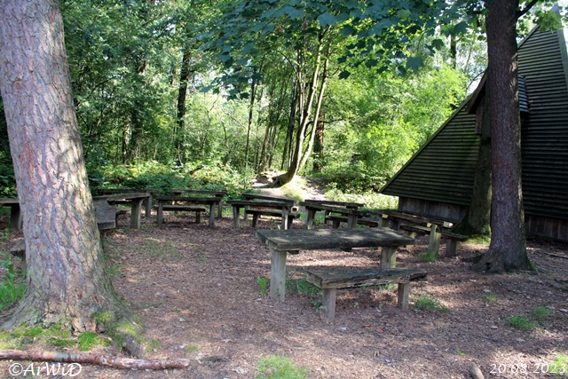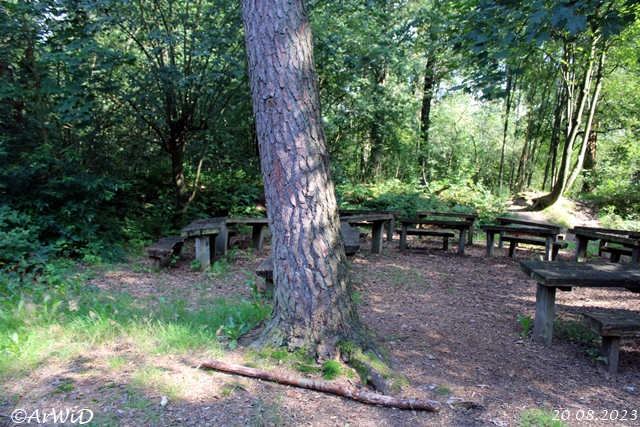 Kurz vor der dortigen neuen Schutzhütte an der Kreuzung steht auch auf den UTM-Koordinaten 32 U 578719 5857123 eine Bank mit der Werbebeschriftzug der Imkerei Helmut Völker aus Hermannsburg auf der Rückenlehne.