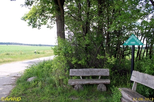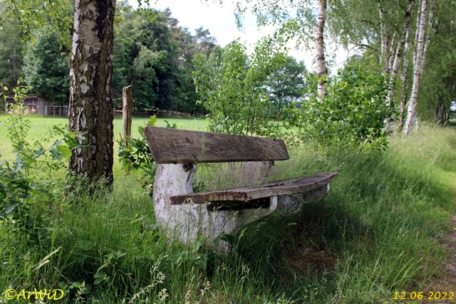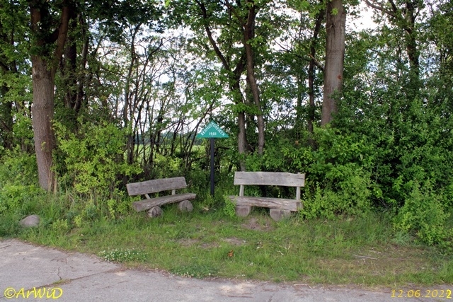 Diese beiden Banken in einer kleinen Baum- und Buschgruppe habe ich auf der Position 32 U 509600 5858356 habe ich einer Wirtschaftswegkreuzung in der Nähe von Hösseringen bei Suderburg entdeckt.