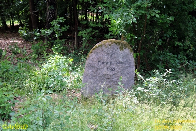Es handelt sich hierbei um den Gedenkstein zur Flurbereinigung aus dem Jahre 1963 auf der Position 32 U 594015 5856387 mit der dazugehörigen Bank am Radwanderweg in Richtung Unterlüß.
