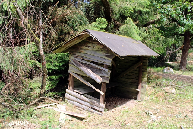 Bei meinen Besuch im März 2025 waren zwar alle Bretter wieder an der Schutzhütte und steht noch immer windschief , sowie die Tanne hinter dem Objekt wurde entfernt.