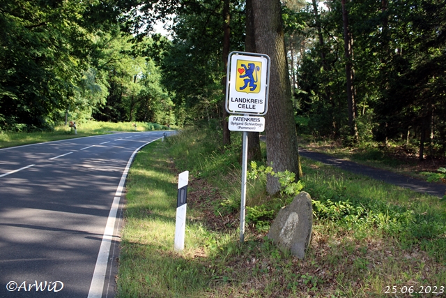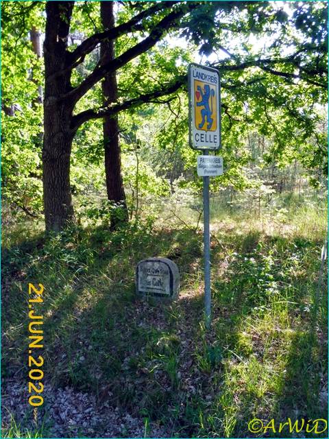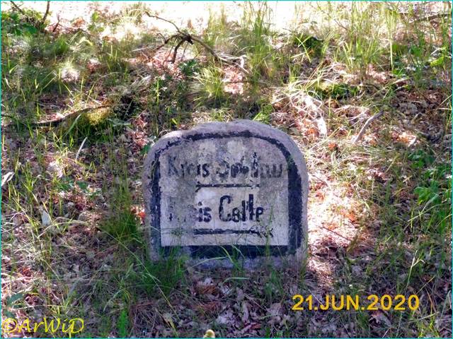 Es handelt sich um den Kreisstein mit den verblichenen Kennzeichnungsfeld am Straßenrand an der Landesstraße 240 auf den UTM-Koordinaten 32 U576129 5863015 in Höhe der Kreisgrenze des Landeskreises Celle und dem Heidekreis.