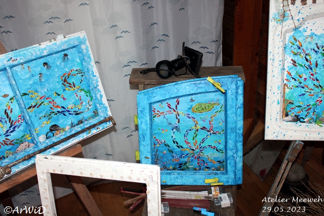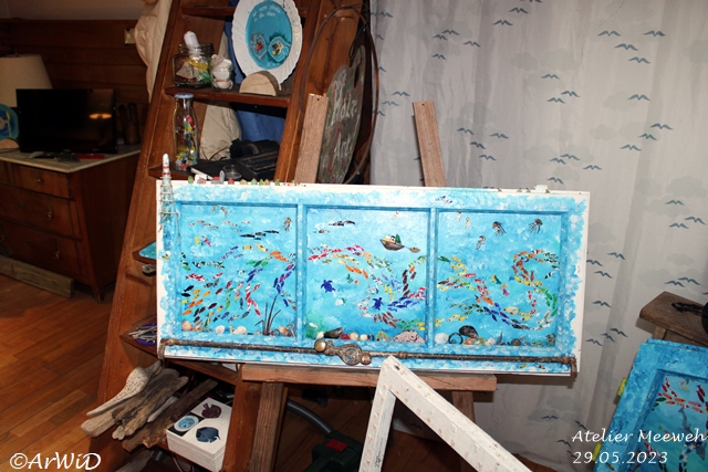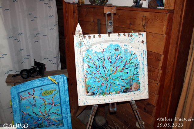 Er betreibt upcyling in dem, der Künstler gesammlte Getränkedosen, aber auch andere Objekte wie alte Fensterrahmen und Türen zu Kunstobjekte umarbeitet in dem er einen Schlüssel zur Lösung der Meeresverschmutzung einbaut.