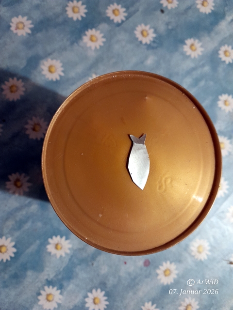 Bei meinen Besuch habe ich auch einen Fisch aus einer alten Getränkedose in Blau geschenk bekommen.