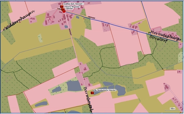 An dieser Stelle ist der vorderste von den vier Kieselgurteichen auf den UTM-Koordinaten 32 U569325 5857412 auf einen Privatgelände.
