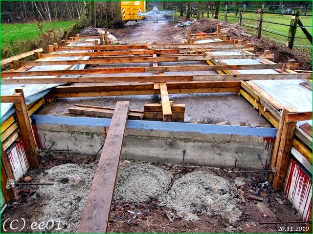 Die nächsten vier Fotos zeigen die Baustelle mit des Einschalung für die neue Brücke im November 2010.