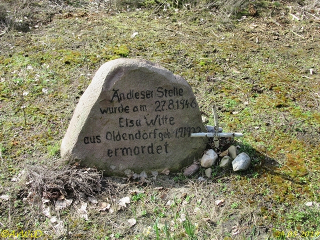 Das Objekt wurde für die 24-jährige Oldendorferin Elsa Witte aufgestellt, die am 27.August 1946 an dieser Stelle ermordet wurde.