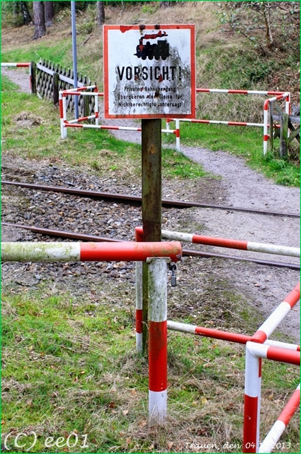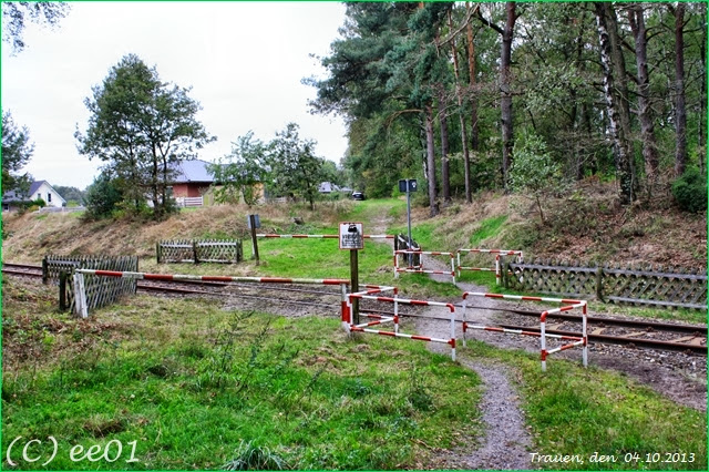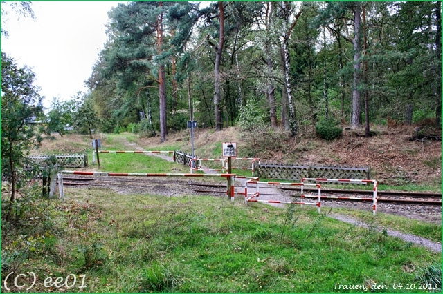 Früher verliefen hier die Gleise von ehemaligen Kieselgurwerk, das Mitte der 1990er Jahre geschlossen wurde, über die Rheinmetallbahn zum öffentlichen Bahnnetz.