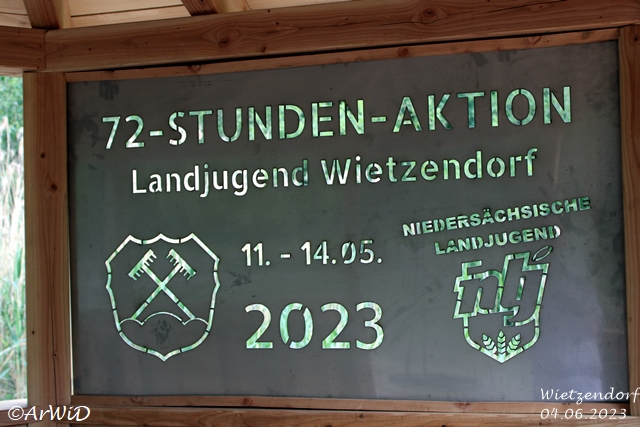 Im Mai 2023 wurde durch den örtlichen Bürgermeister die Aufgabe im Rahmen der 72-Stunden-Aktion der Landjugend Wietzendorf eine hölzerne Grillhütte am Ufer an der Wietze erstellt.