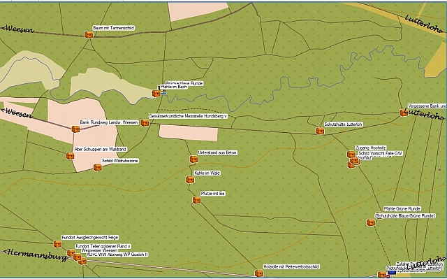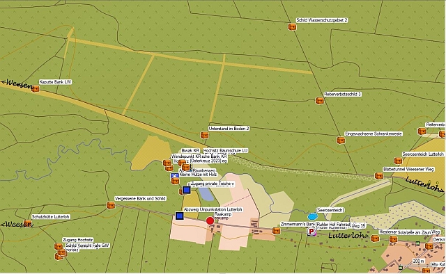 An dieser Stelle ist der vorderste von den vier Kieselgurteichen auf den UTM-Koordinaten 32 U569325 5857412 auf einen Privatgelände.