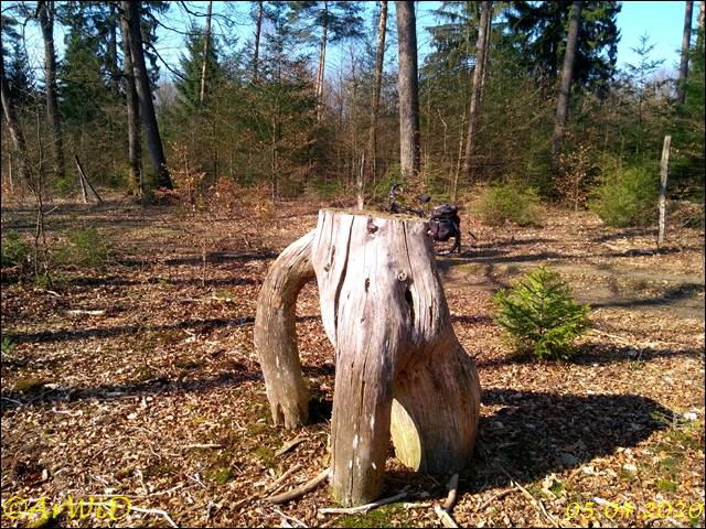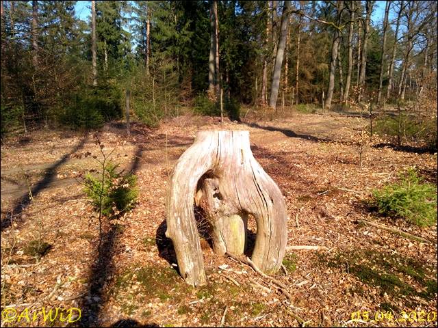 Es handelt sich hierbei um eine dreibeinige Baumwurzel auf der Position 32U 580836 5850341 am Rande des dortigen Wirtschaftsweg im Waldgebiet Orthassel.