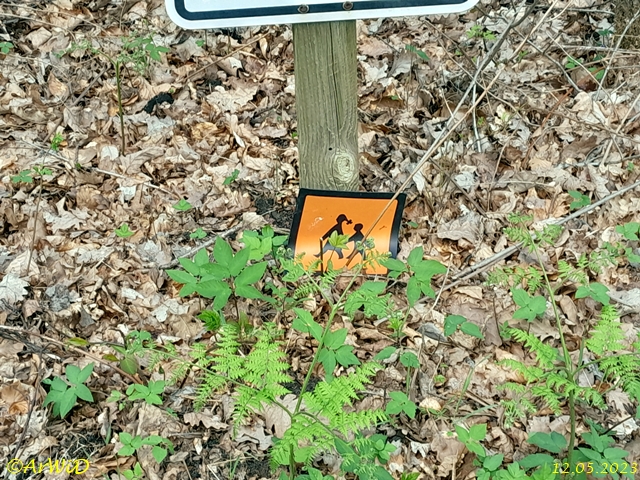 Inzwischen ist der hölzerne Pfahl des Wegweiser ab gegammelt und liegt samt der angebrachten Schilder im Laub und Dreck.