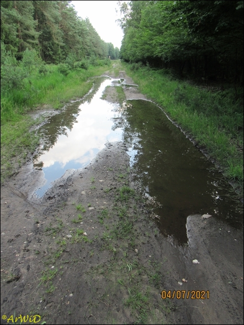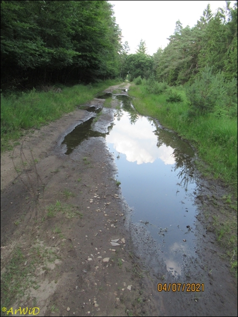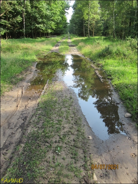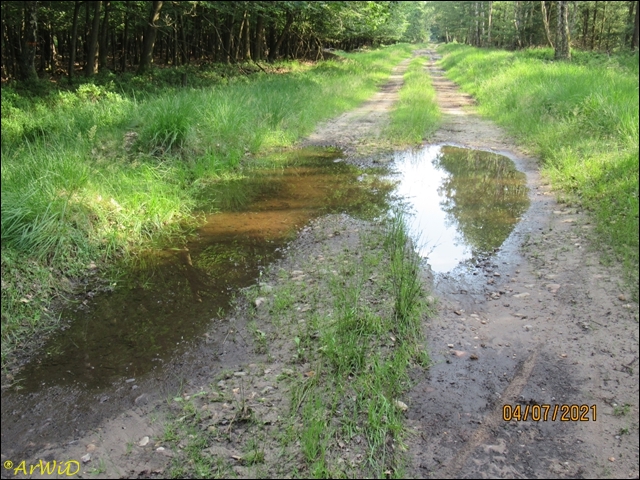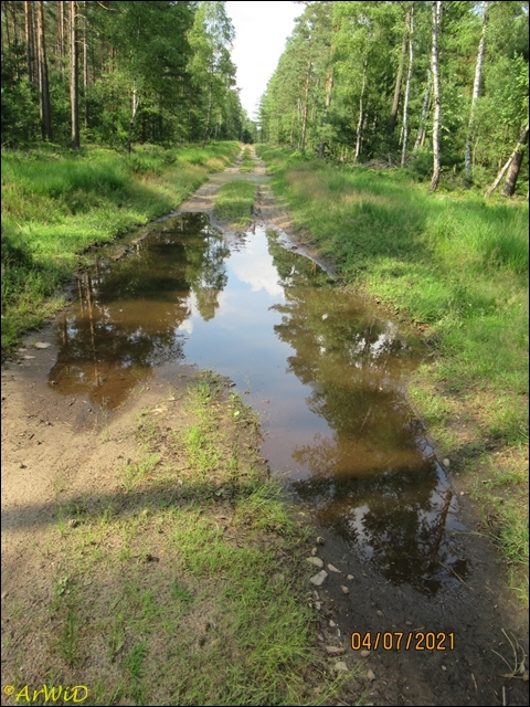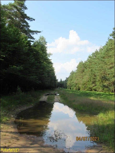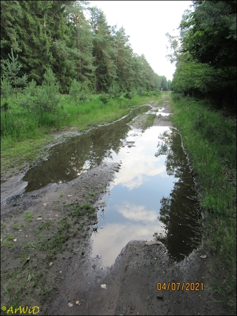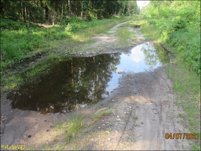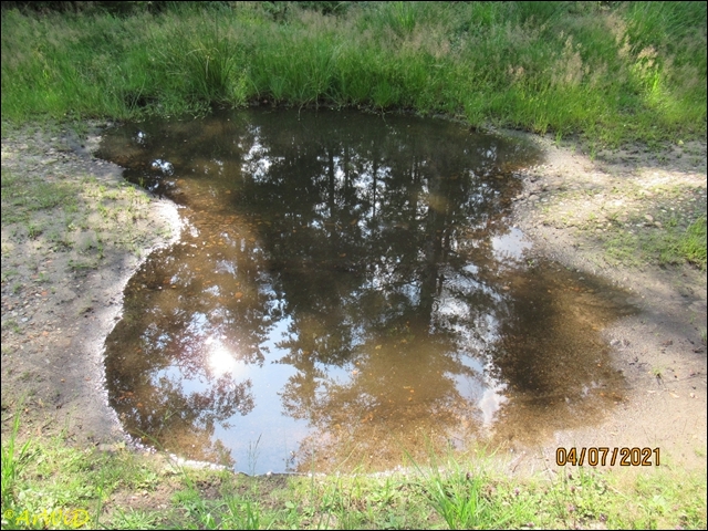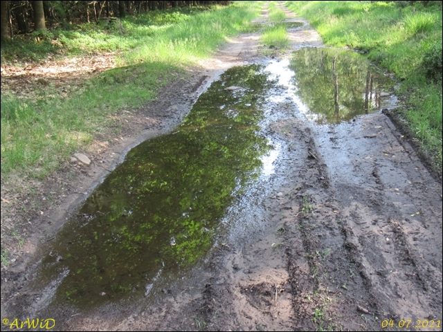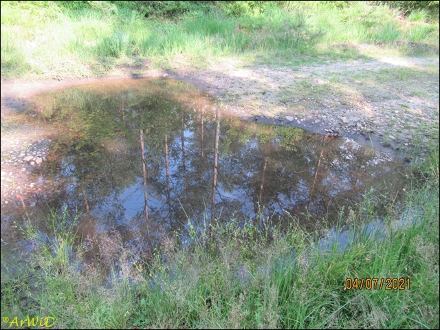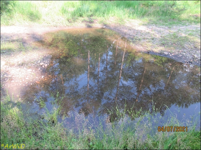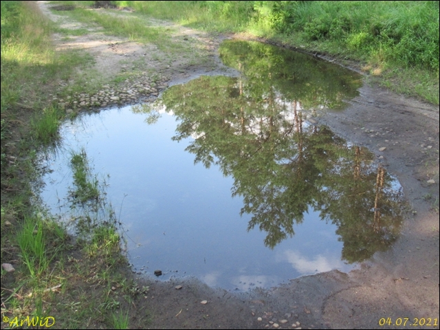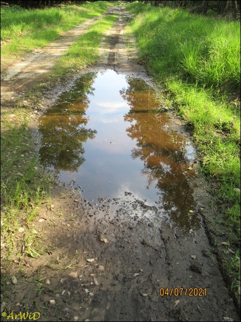 Die letzten beiden Fotos zeigen eine Pfütze im weiteren Verlauf des Weges zum Abzweig Richtung zum Räuberweg zurück nach Lutterloh über die kleine Brücke über den Lutterbach.