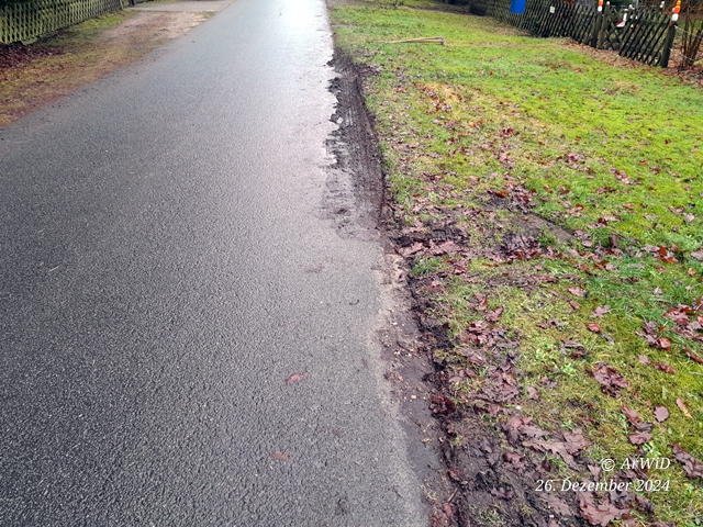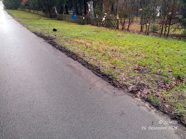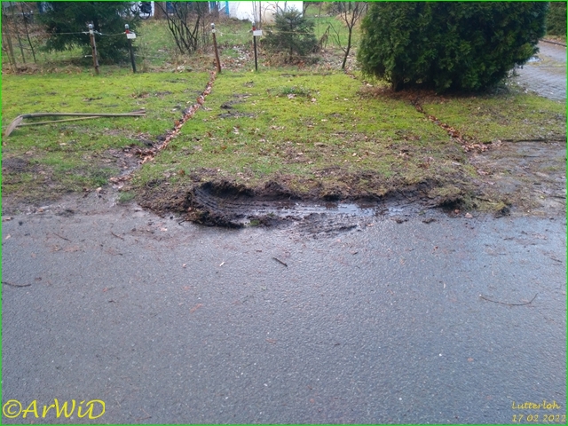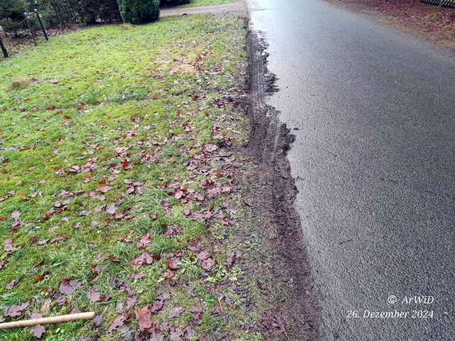 Letzte Woche hat ein Autofahrer mal wieder trotz der Nässe teilweise an meinen durchweichen Gemeindestreifen an der Straßenkante abgestellt.