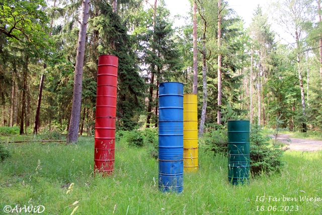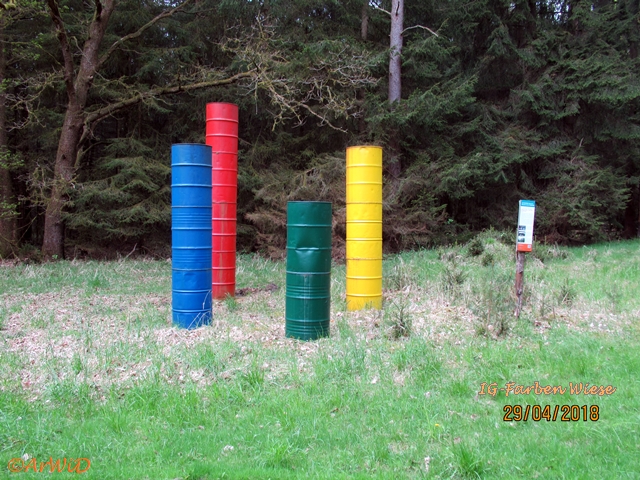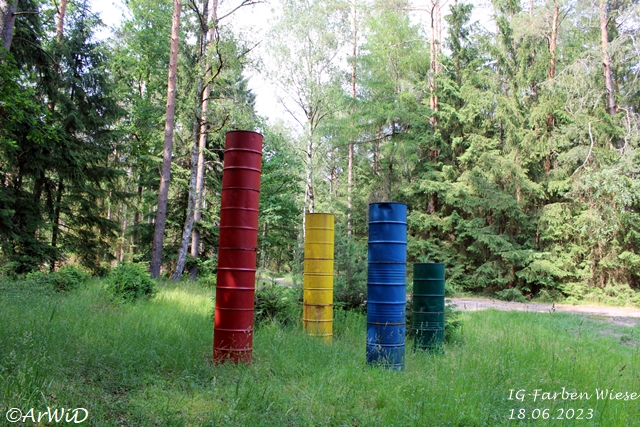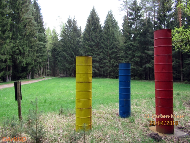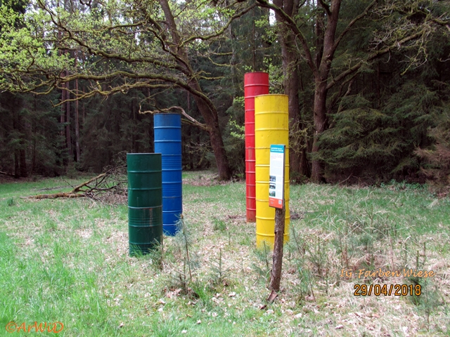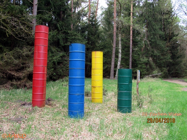 Als erstes möchte ich euch Fotos von der Skulptur „Farbfässern“ auf den UTM-Koordinaten 32 U 591801 5848614 von der Lehrter Künstlerin Hildegard Mohn zeigen, die bei einen weiteren Besuch an dieser Stelle im April 2018 gemacht habe.