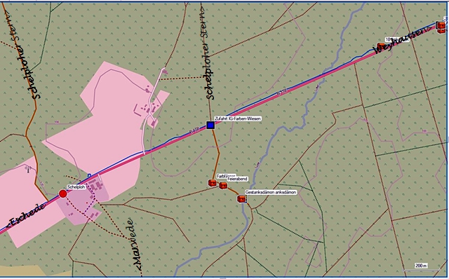 Aufgrund der Geruchsbelästigung bei der Herstellung wurde dieses abgelegene Gelände durch Vermittlung von Schoppe & Stolzenberg vom Vorbesitzer Becker aus Schelploh abgekauft.
