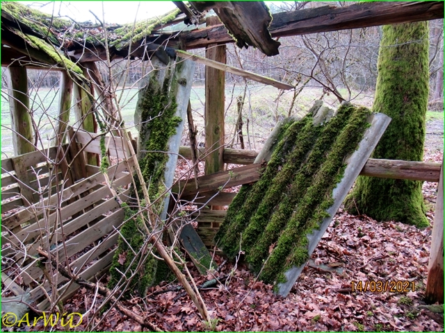 Es handelt sich hierbei um die alte Werbung und Kleinkunst an der Holztor eines landwirtschaftlich genutzten Schuppen auf der Position 32 U 594222 5859940 am Rande des dortigen Verbindungsweg in Richtung Dreilingen.