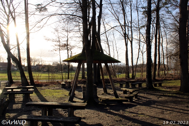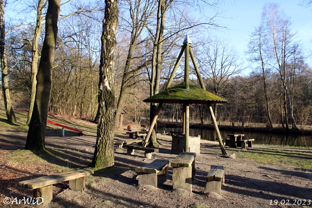 Es handelt sich hierbei um den offiziellen öffentlichen Grillplatz mit Teich und Spielplatz auf der Position 32 U 570667 5857787 an Rande von Bonstorf.