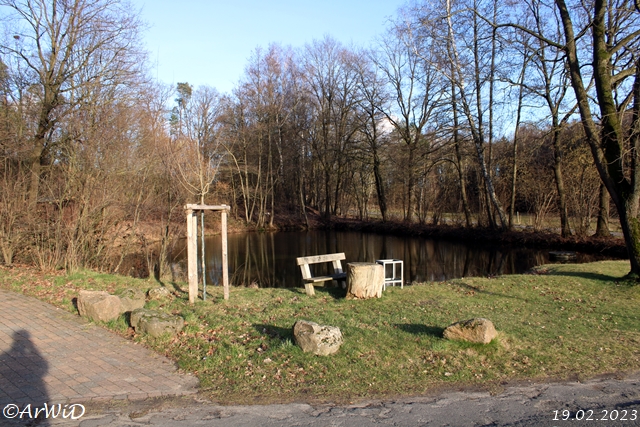Neben den dazugehörigen Sitzgelegenheiten gibt es hier auch noch die Möglichkeit sich in den an Rande liegenden Teich.