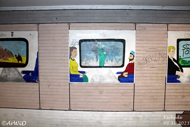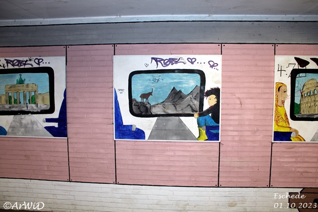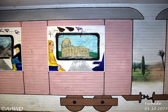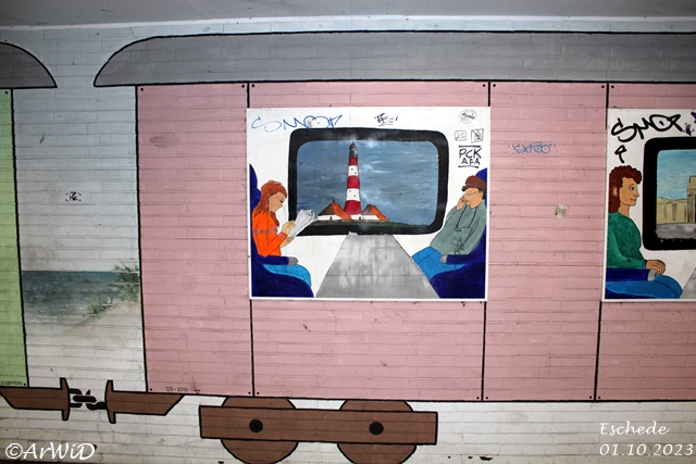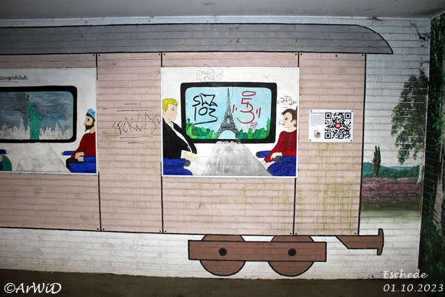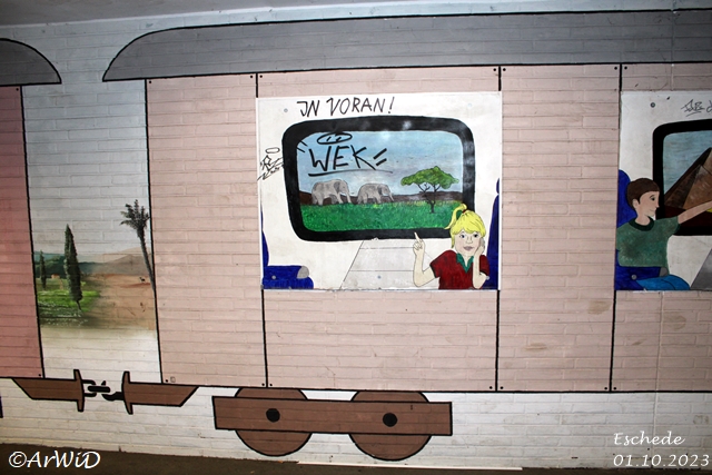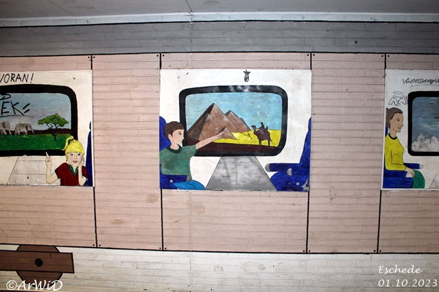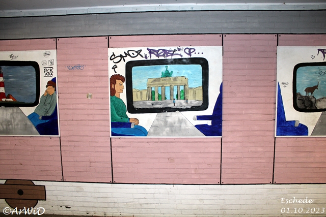 Bei meiner Radtour im Oktober 2023 habe ich auch wieder die kleine „Galerie“ an den Wänden des Fußgängertunnels des Bahnhofes in Eschede besucht.