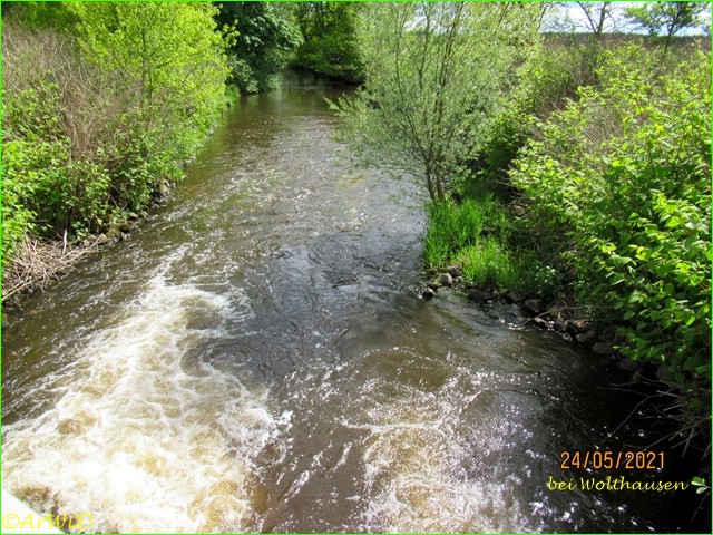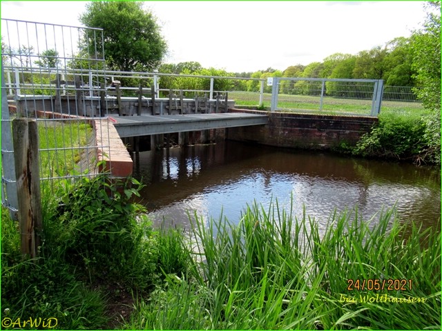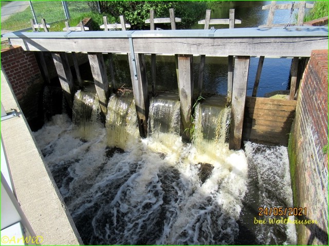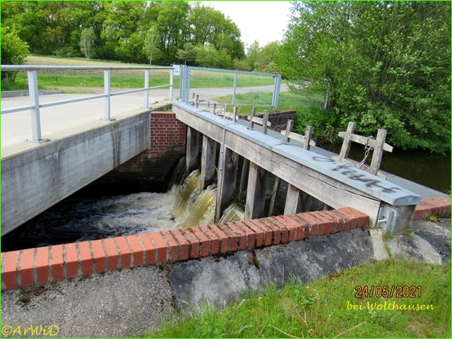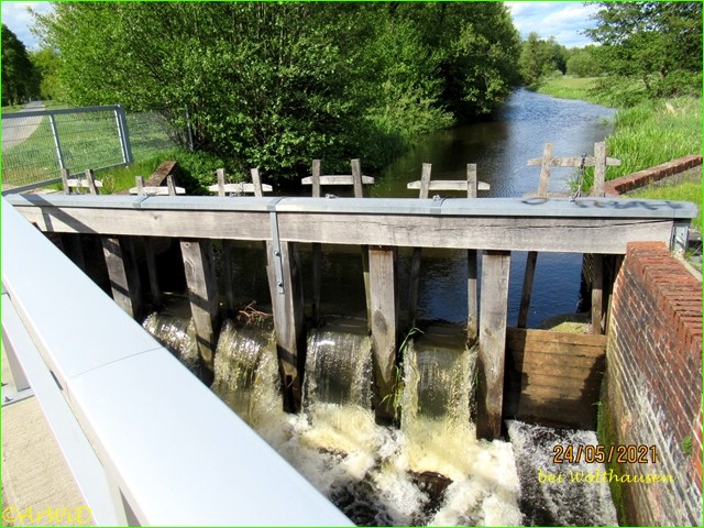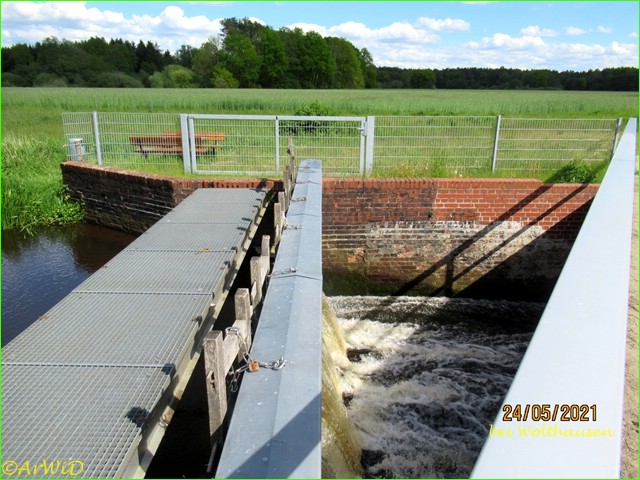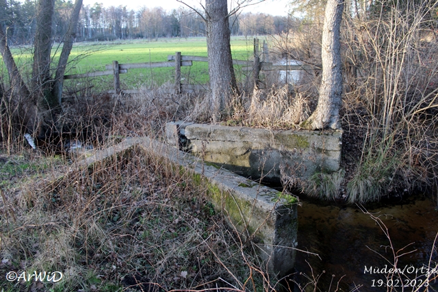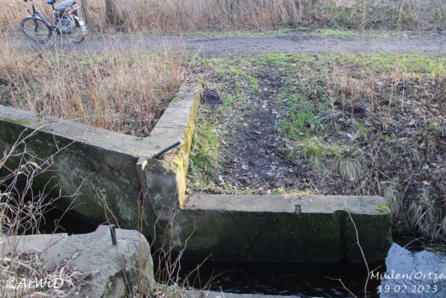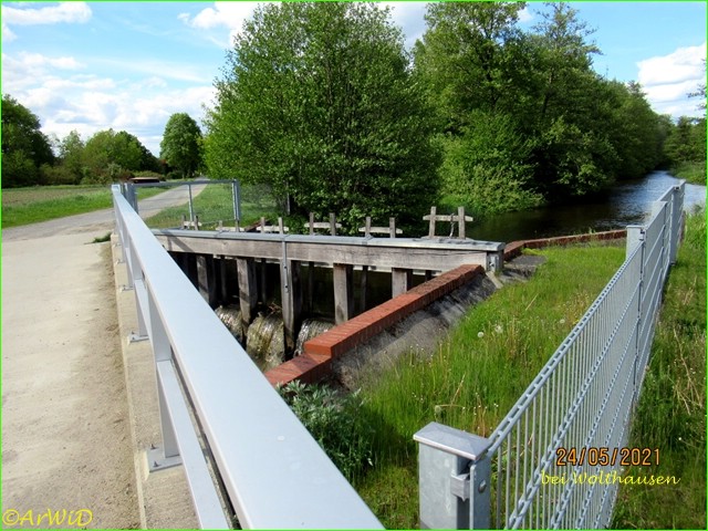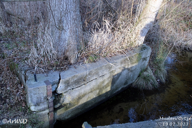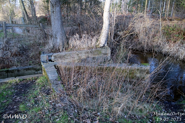 Als zweites das dazugehörige Stauwehr aus Beton und den dazugehörigen Stausee auf den UTM-Koordinaten 32 U 590230 5838639 an der Lutter etwas abseits der Straße.