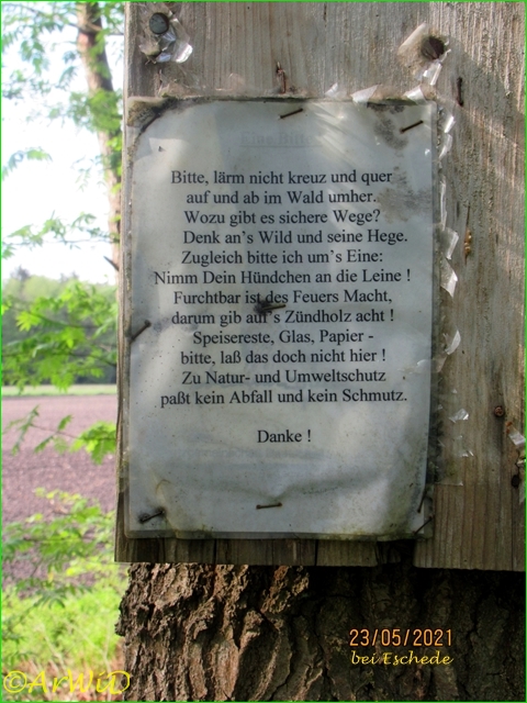 An der kleinen Zeigweg Richtung Feld auf den UTM-Koordinaten 32 U 584951 5944996 habe ich das mir bekannte Schild mit der Aufforderung zum verbleib auf den offizielle Wegen wieder mal besucht.