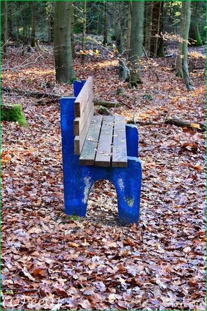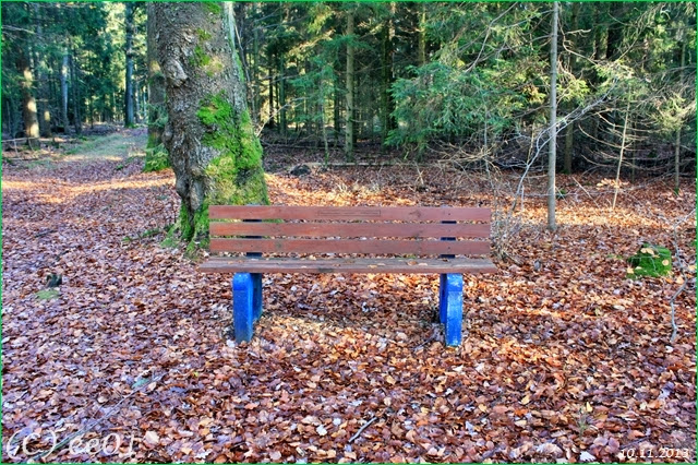 Die zweite Bank mit blauen Füßen und den dem Schriftzug „Angenehme Rast wünscht Wilfried Staiger“ steht an einer Kreuzung auf der Position 32 U 586127 5853877. An dieser Bank war bereits im Jahre das letzte Brett an der Sitzfläche durch eine stärkeres Brett ausgetauscht wurden.